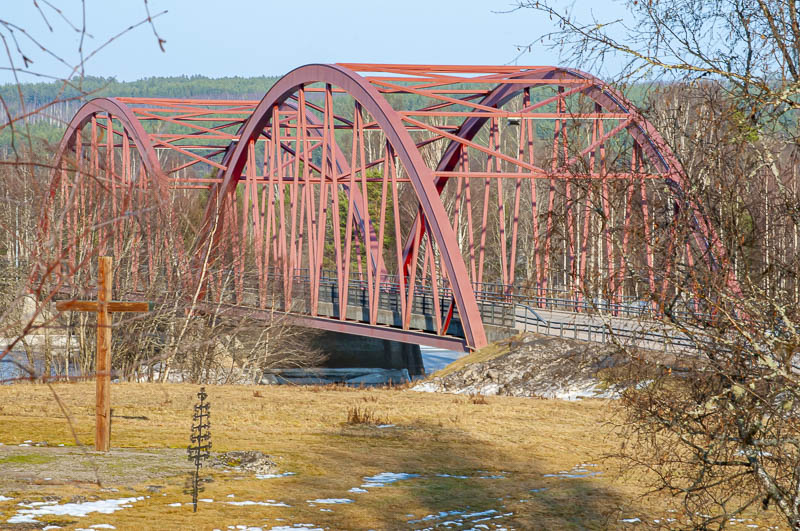 En bild från vägen S932 vid Ekshärad, valvbågbro över Klarälven. Kallad (broa i byyyn)