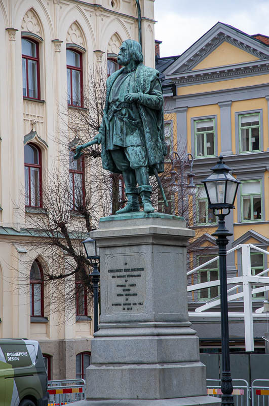 Engelbrekt Engelbrektsson står staty på stortorget i Örebro, modellerad av Carl Gustaf Qvarnström, avtäcktes 1865 av kung Carl XV