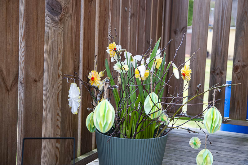 Glad Påsk min fru arrangerade detta Påsk arrangemang, av egen konstruktion för att undvika fjädrar. Som man ju inte skall använda.