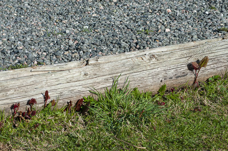 Nu börjar kriget igen, mot denna invasiva växt ”Parkslide”. Den växer i gräsmattan men där håller gräs roboten den i schack, men efter kanten här får jag klippa den vartefter den växer.