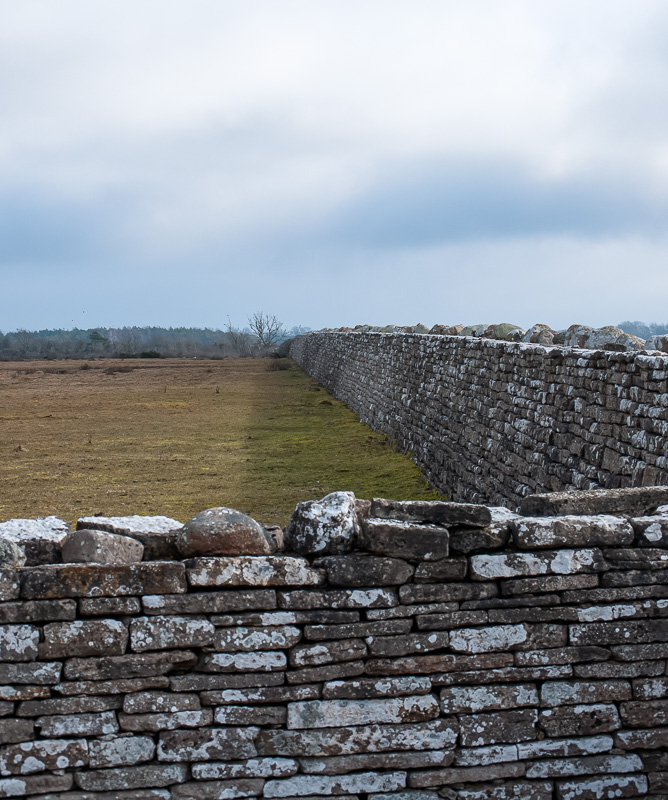 På muren ligger det rundformade stenar av likartade storlek. Det avbryter mot muren i övrigt som består av skiffer plattor. Muren är Karl X Gustavs mur på Öland. Den byggdes 1653, och är 4611 meter