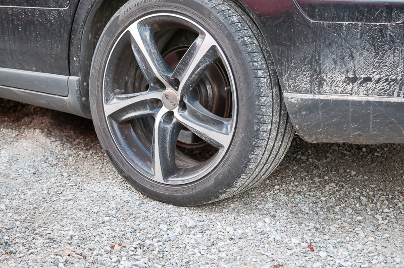 På den här parkeringen har man valt att göra avbalkning mellan raderna av parkerade bilar med trä plankor.