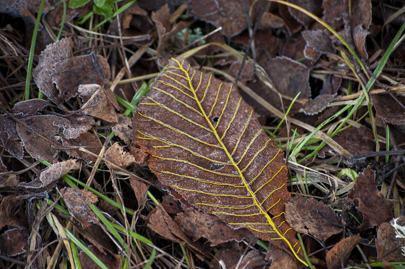 Blad i skogen i december.