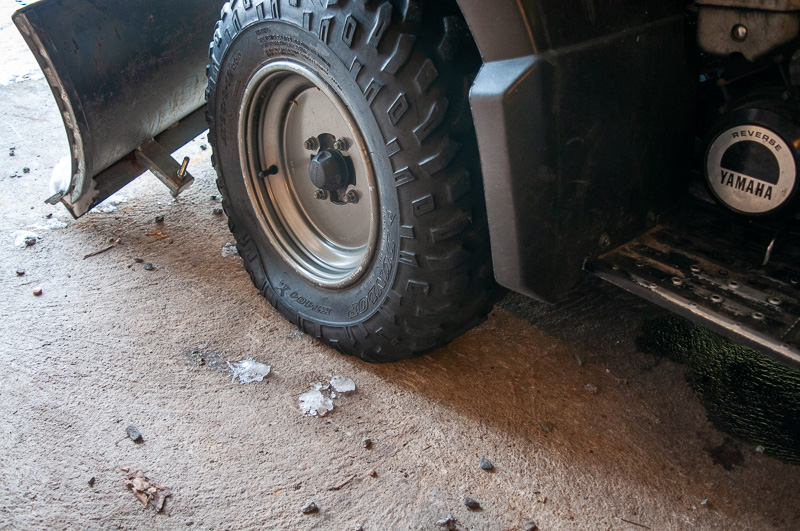 Måste nog snart byta däck på min fyrhjuling. Används nu under vintern till snökörning, men till våren för att köra hem ved. Behöver pumpa däcket i stort sätt varje dag.