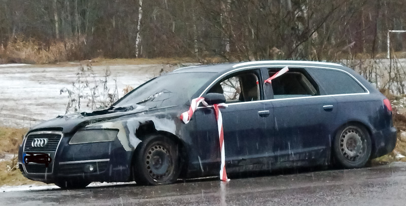 Den här bilen började brinna under färd, så brandkåren fick komma och släcka den. Har helt enkelt gjort sitt. Alla skall ha klarat sig bra.