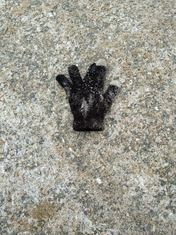 Inte riktigt en handske, men väl en fingervante som blivit kastad på skolgården. Någon får frysa på hemvägen.