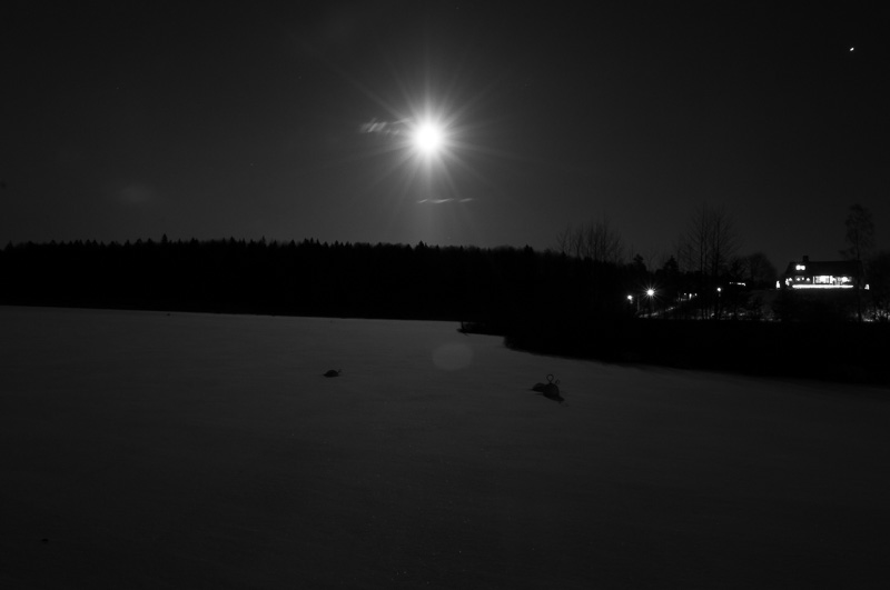 Månljuset lyser upp hela sjön.