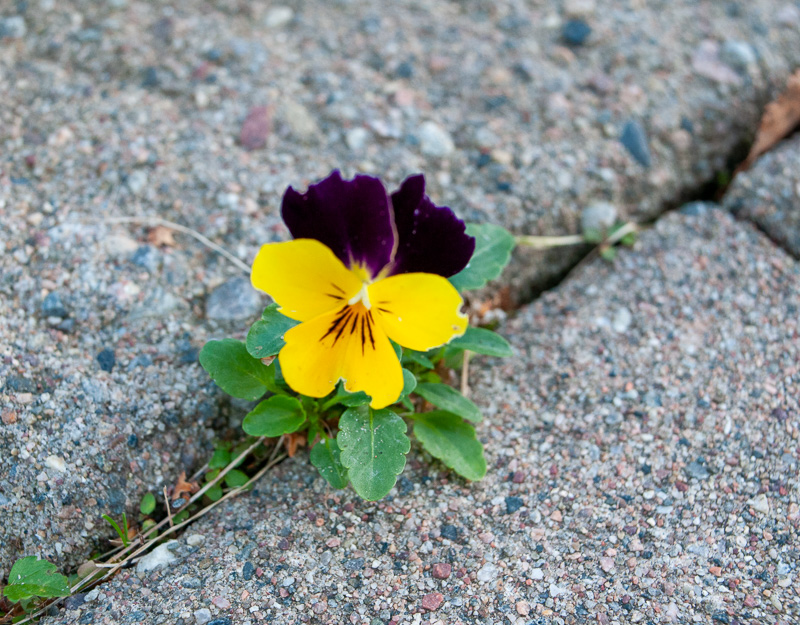 Förvisso inte Violen från Flen. Men denna lilla stackare växer nu upp i våran plattläggning. Inte dåligt i slutet på september.
